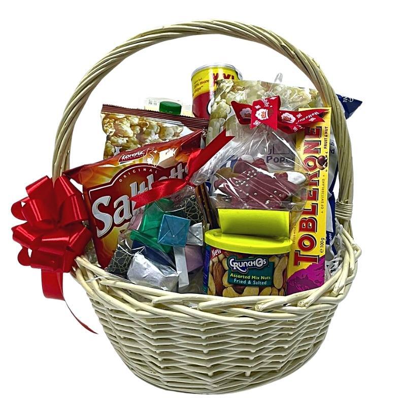 Time to sit back, rest and enjoy your snacks. There is nothing better than after a tiring day at work, sitting in front of the TV and watching your favorite movies accompanied by this delicious box loaded with our most favorites such as a bag of popcorns, Toblerone chocolate, Pringles, crunchy peanuts and many more. Enjoy!