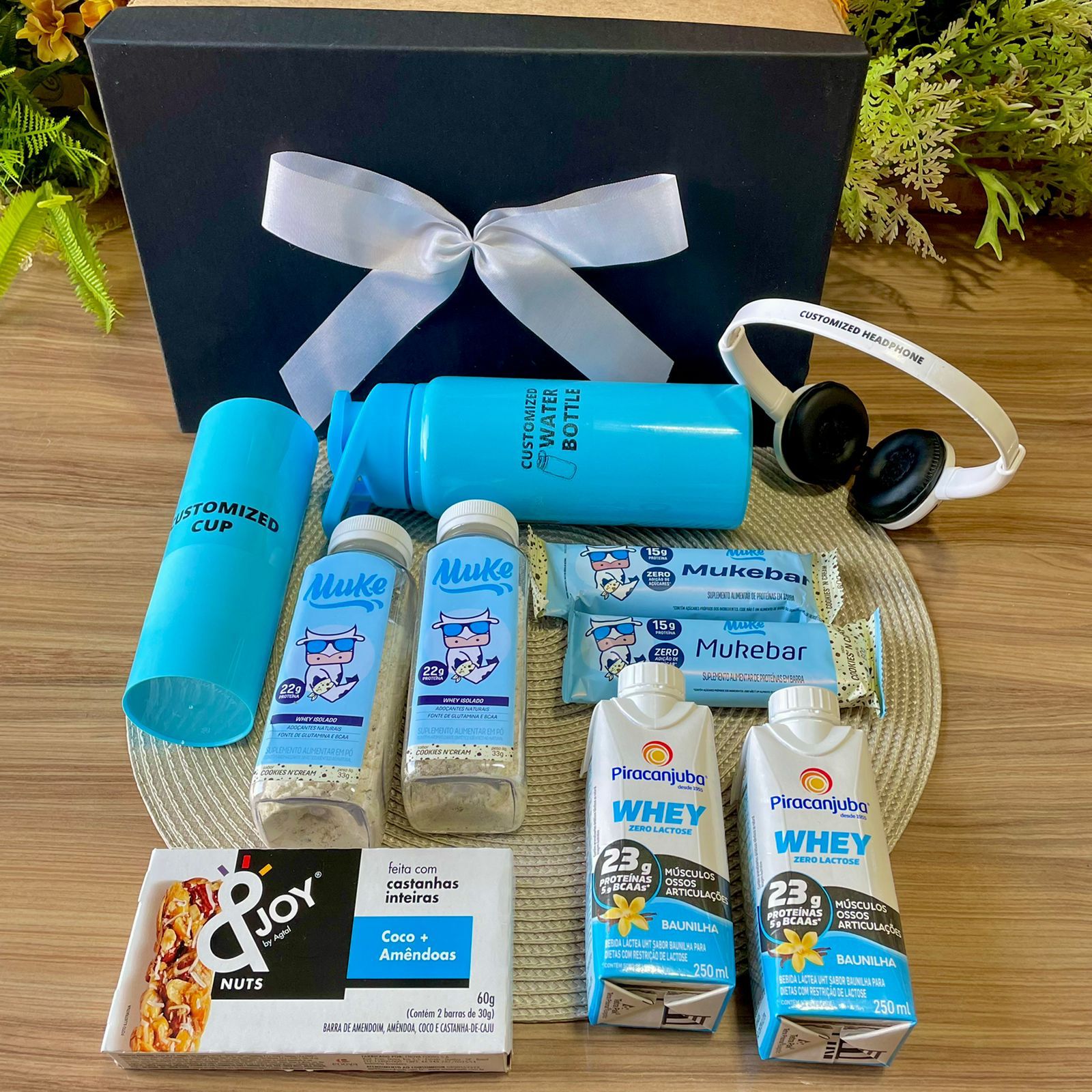 Gear up, and get ready for a fitness goal routine! It's good news for sports lovers to have this box during workout days which offers the best companion for your favorite music, the customized items like a cup, headphones, and a water bottle. You can add the name of your company in the preference section so that it can be printed on customizable items. It gives you the energy to boost your body with Whey protein cookies, Mukebar protein cookies & chocolates, and Whey Yogurt in vanilla and chocolate flavors alongside a cereal bar. Make the best workout plan with good nutrition and personalized belongings.