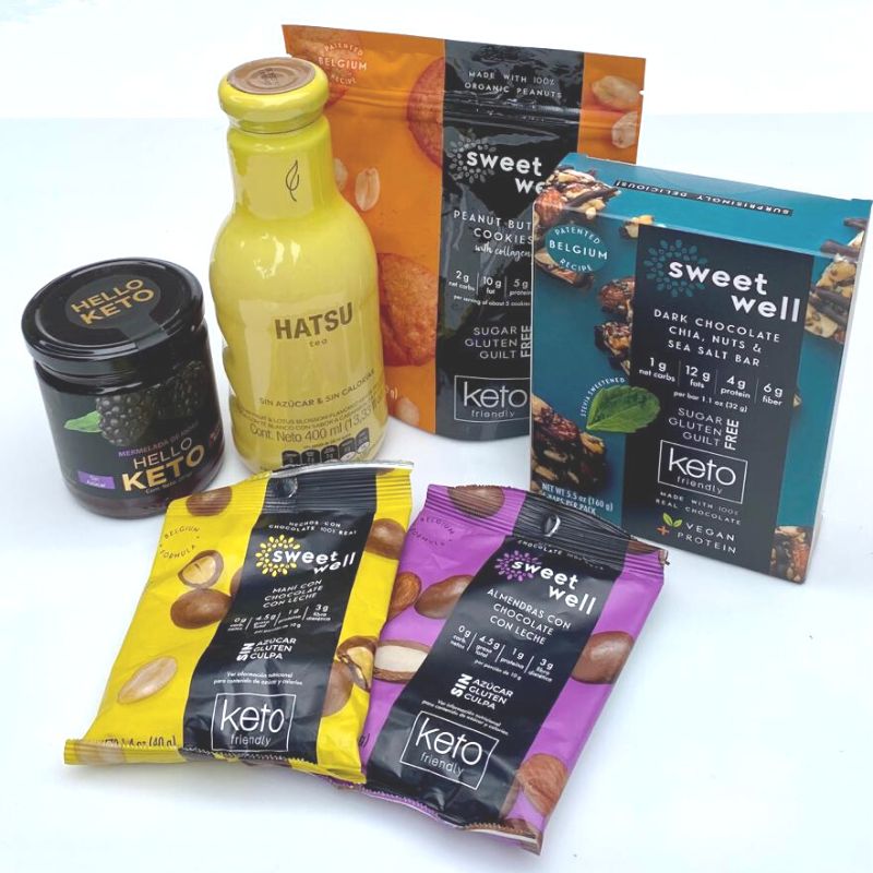 A box of keto-friendly snacks, so you can still have a treat without the disappointment on the scale! A few of these guilt-free snacks include almond chocolate, galette, peanut butter cookies, Hatsu tea, etc  Your diet is not limited by flavor with this variety-filled box.