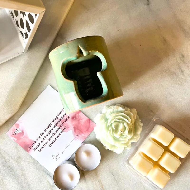 The Arabesque oil burner, with its intricate design, adds a touch of elegance and cultural flair to any room while diffusing your favourite scents. Paired with wax melts, this set allows you to organize and enjoy multiple wax melts at once, creating a personalized fragrance experience. The oil burner's detailed craftsmanship complements any décor, making it both a functional and stylish piece. Choose any scent variant in the preference section. Together, they offer the perfect blend of beauty and aroma, transforming your space into a serene, scented haven.