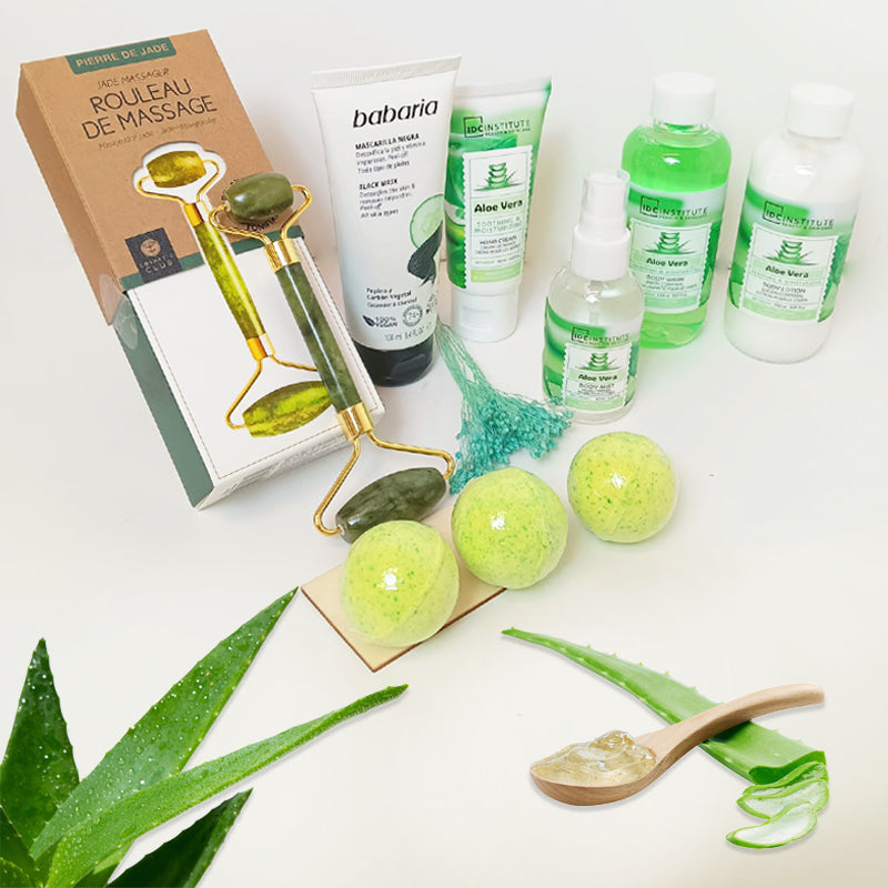 With this kit, you'll feel completely relaxed and filled with aromas. It's an ideal and appreciated gift for anyone who loves to pamper themselves and enjoy the benefits of Aloe Vera extract. Includes: 3 bath bombs, 60ml hand cream, 150ml shower gel, 150ml body lotion, 60ml body spray, Also included is a 100ml black cucumber and charcoal mask for all skin types to detoxify and eliminate impurities. Finish it off with a Jade facial massager. Enjoy a moment of relaxation!