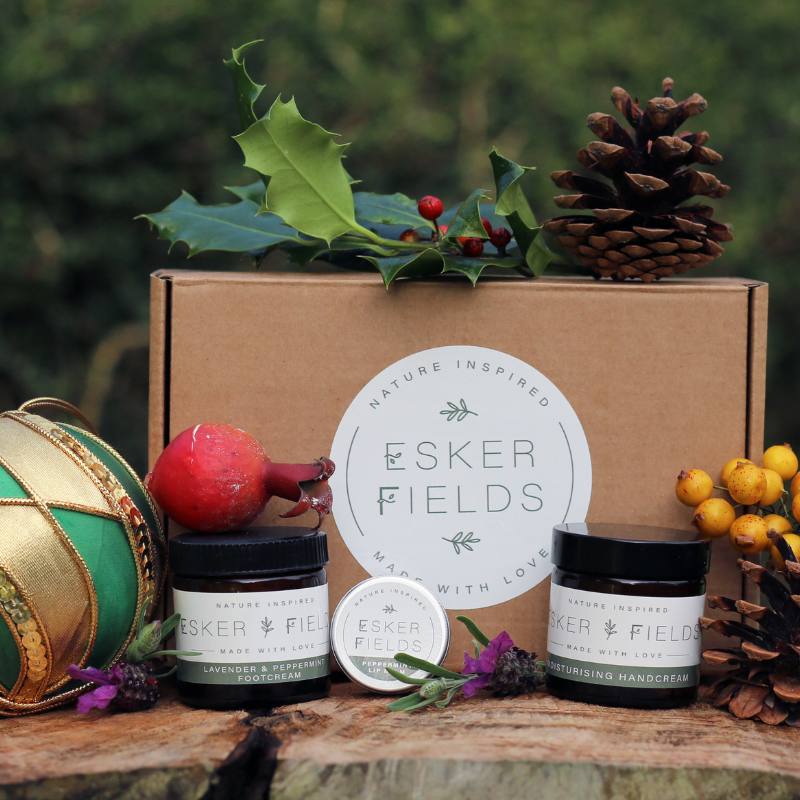 Give your hands and feet the ultimate treat with this Esker Fields gift set. The hand cream (60ml) will heal, soothe, and improve the skin and nails, while the foot cream (60ml) will ease sore, tired, achy feet. The Peppermint lip balm will leave your lips kissably soft. Keep this set with you wherever you go, and add a little luxury to your day!