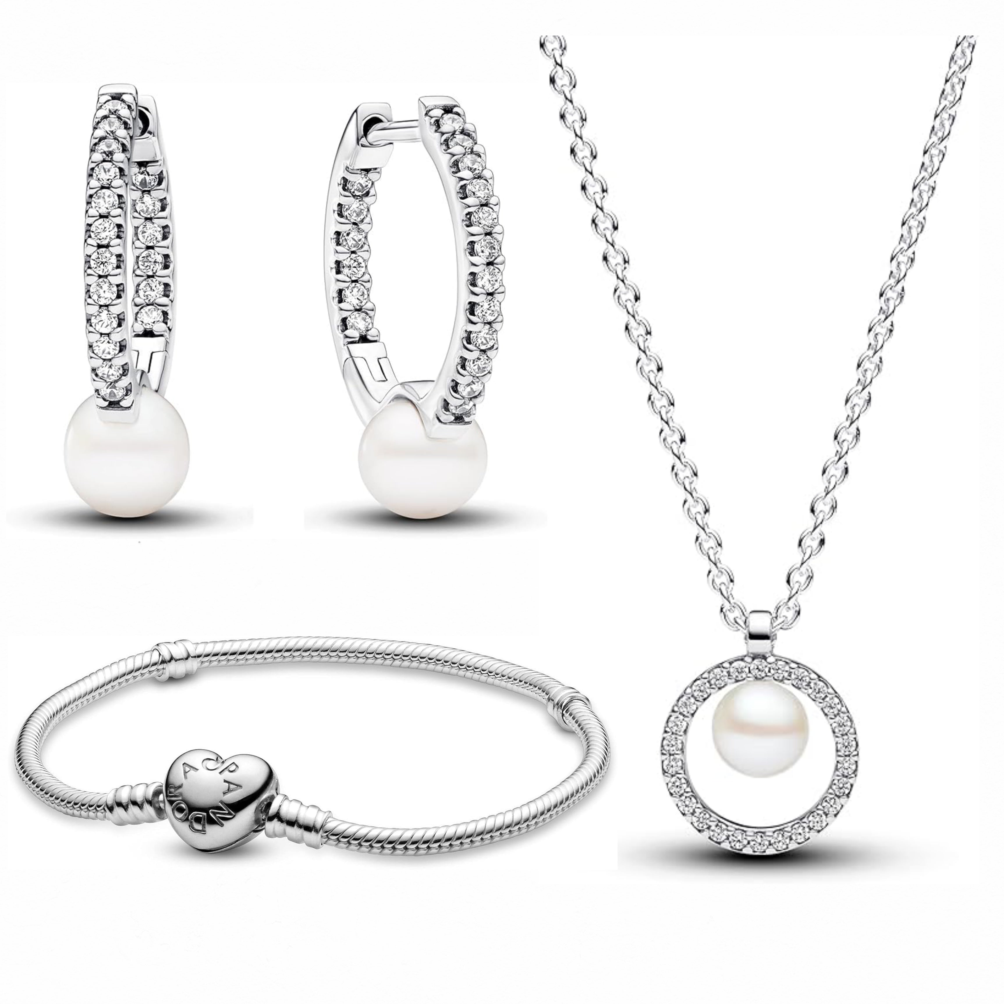Behold the perfect expression of elegance and sentiment, a gift thoughtfully curated to celebrate the special women in your life. This beautifully packaged set features Pandora’s iconic jewelry pieces, such as a signature charm bracelet, coordinating sparkly pearl earrings, and necklace. This set is crafted from high-quality materials like sterling silver and adorned with sparkling stones. Designed to capture meaningful moments and personal stories, each piece in the set blends timeless style with modern sophistication. Ideal for birthdays, anniversaries, or any heartfelt occasion, the Pandora Women Gift Set is a treasured keepsake she’ll cherish forever.