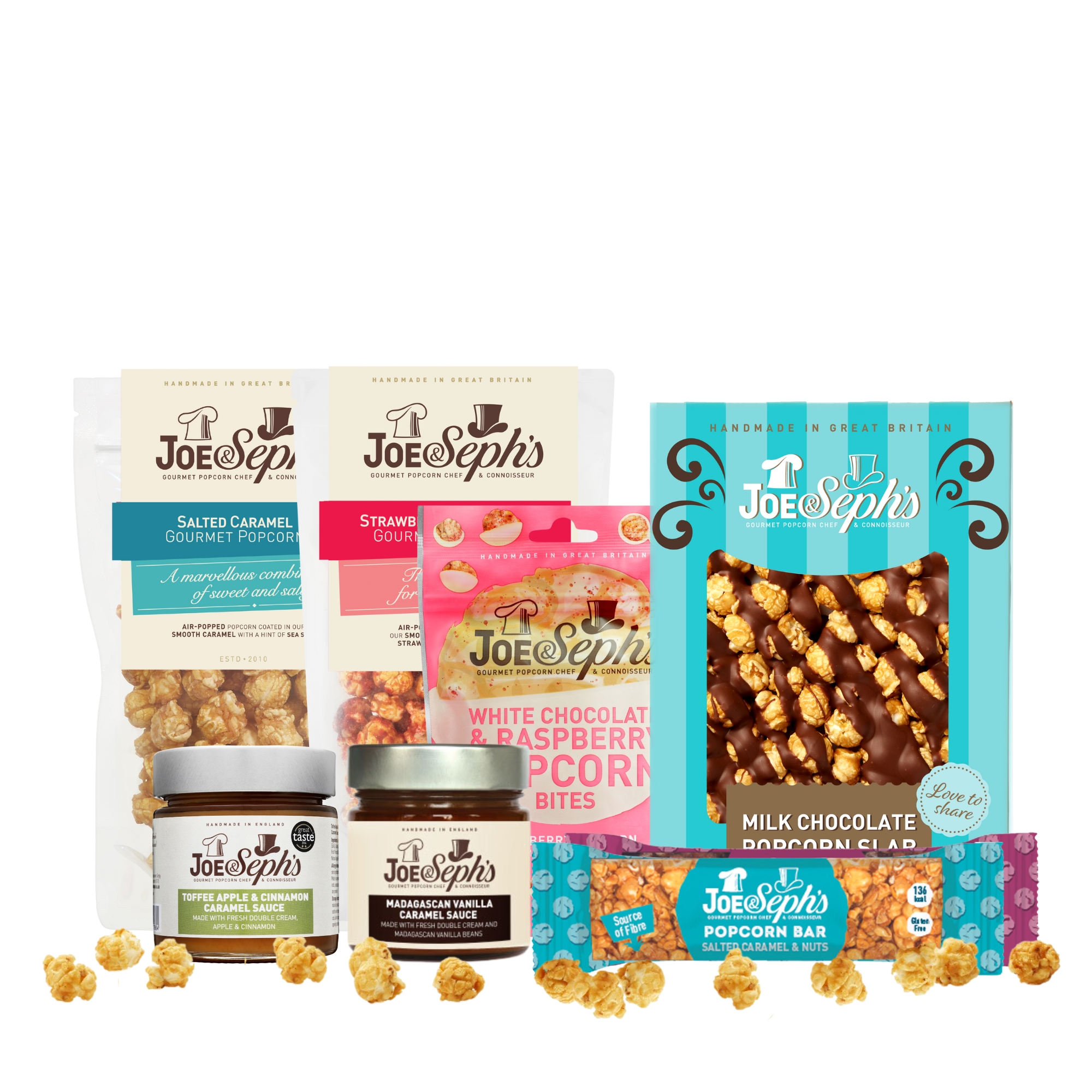 Step into a world of popcorn delight with an array of Popcorn Treats by Joe & Seph’s, where you are the architect of flavour! Choose from a delectable array of mouth-watering flavours where you can indulge in the rich and velvety embrace of Belgian Chocolate or savour the perfect blend of sweet and salty with Salted Caramel. Whether you're a sweet tooth or a savoury connoisseur, this popcorn medley has something to satisfy every craving in various forms, from popcorn bites and bars to gourmet popcorn slabs and caramel sauce. Joe & Seph’s is a London-based popcorn company that takes pride in using only the finest ingredients to create the best-tasting popcorn and the perfect addition to share at a movie night or enjoy alone. Pop, crunch, and savour the extraordinary with Joe & Seph’s popcorn – because ordinary popcorn is a thing of the past!