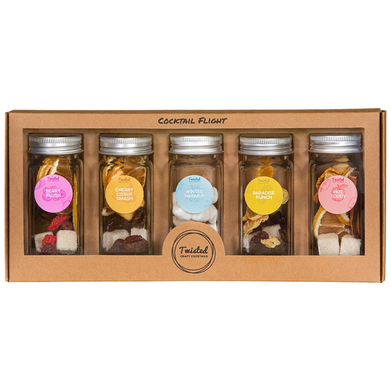 Elevate happy hour with this zero-waste cocktail flight featuring five artisanal 4oz jars packed in a custom gift box. From smoky sips to refreshing fruit blends, it’s a fun way to explore seasonal flavors sustainably at home.