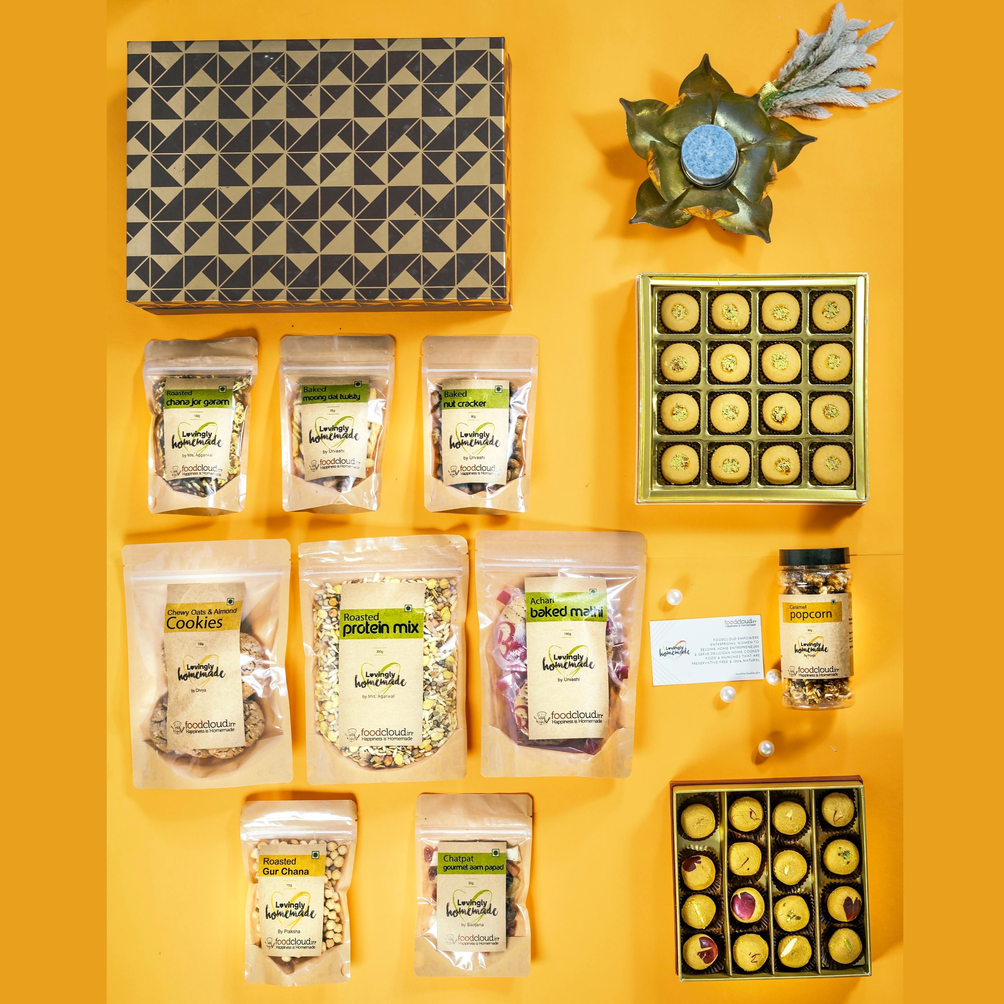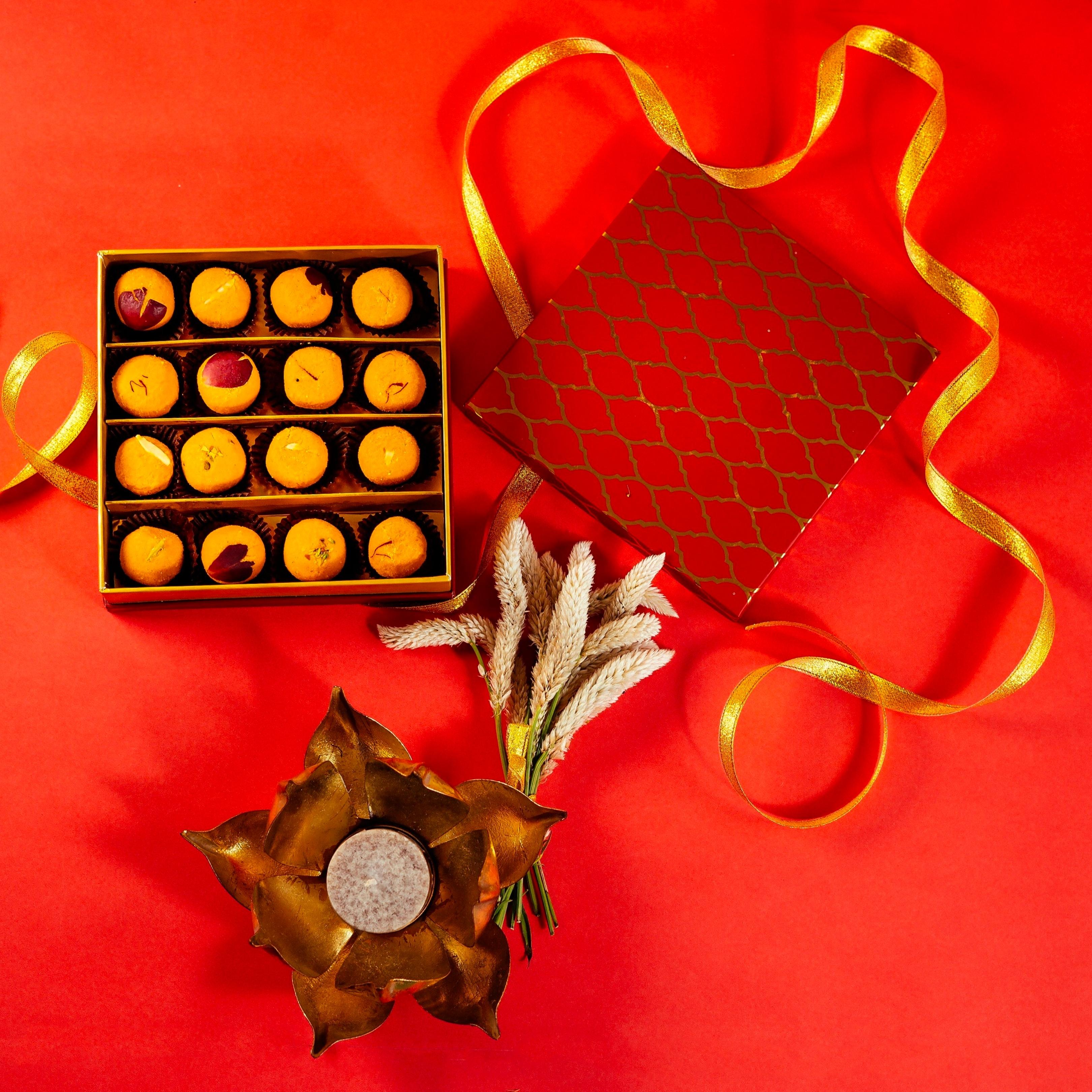 What better way to pamper your loved ones than with a lovely gift hamper of delicious homemade treats? It comes along with lovingly hand-crafted besan laddoos that will melt in your mouth and a beautiful candle to brighten your home.