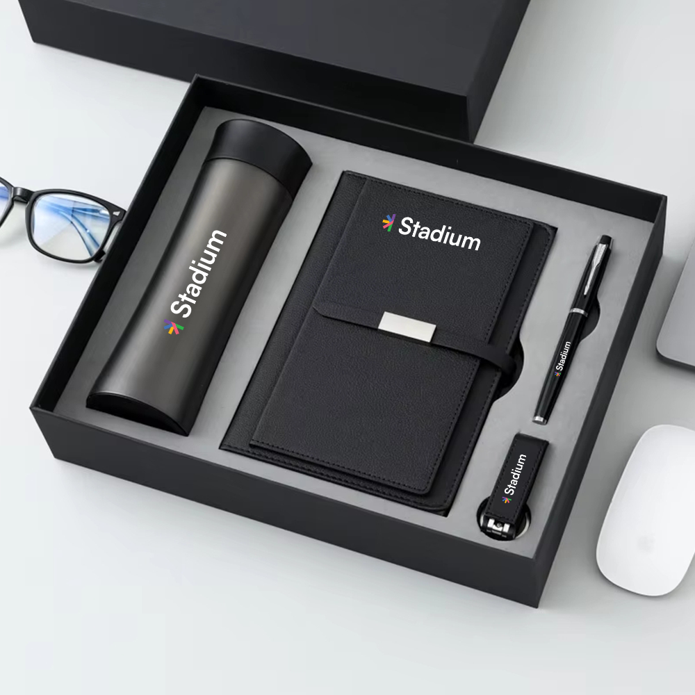 This Office Desk Kit can be personalized using dye sublimation printing. This decoration method allows for vibrant, full-color designs on the tumbler, notebook cover, and potentially the leather flash drive case. Consider adding company logos, recipient names, motivational quotes, or custom artwork. For best results, provide high-resolution vector images. Custom color matching may be available upon request.