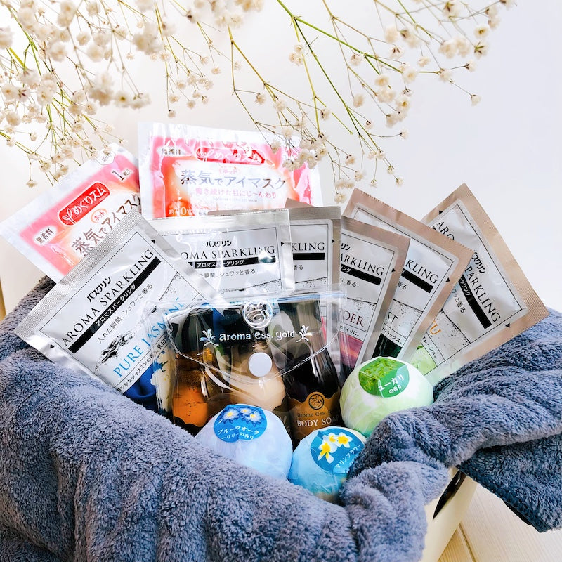 After a long day of work, a hot bath is the best way to wash away fatigue. Revamp your relaxing bath time with these various types of exquisite aroma bombs and bath salts. This box will include aromatic shampoo, conditioner, body soap, eye mask, and towel with six different types of bath salts and bombs. Everything you need to unwind the Japanese way.