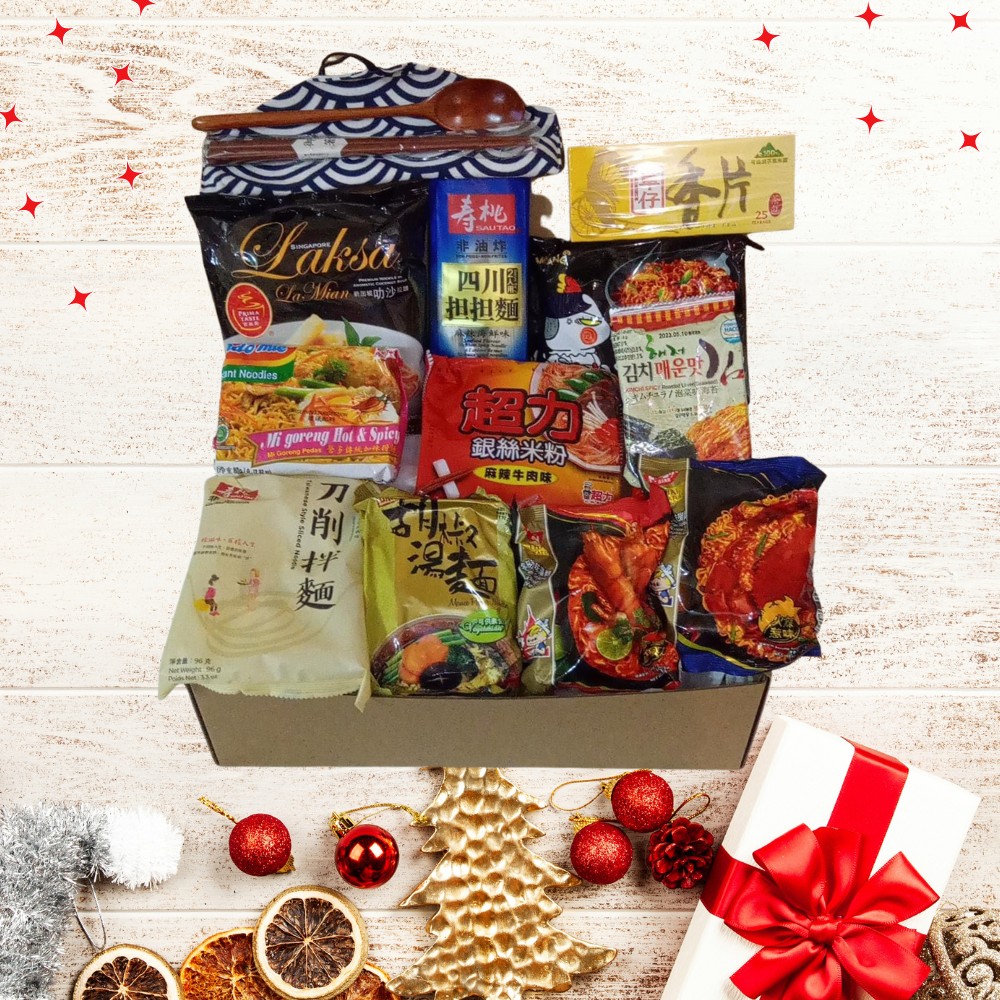 An assortment of spicy noodles with a jar of pickled veggies, certain to excite the taste buds! Our fantastic spicy noodles box contains the top-selling instant noodles in Asia, also with our signature item - fresh pickled vegetables made in Hong Kong and a box of Chinese tea.