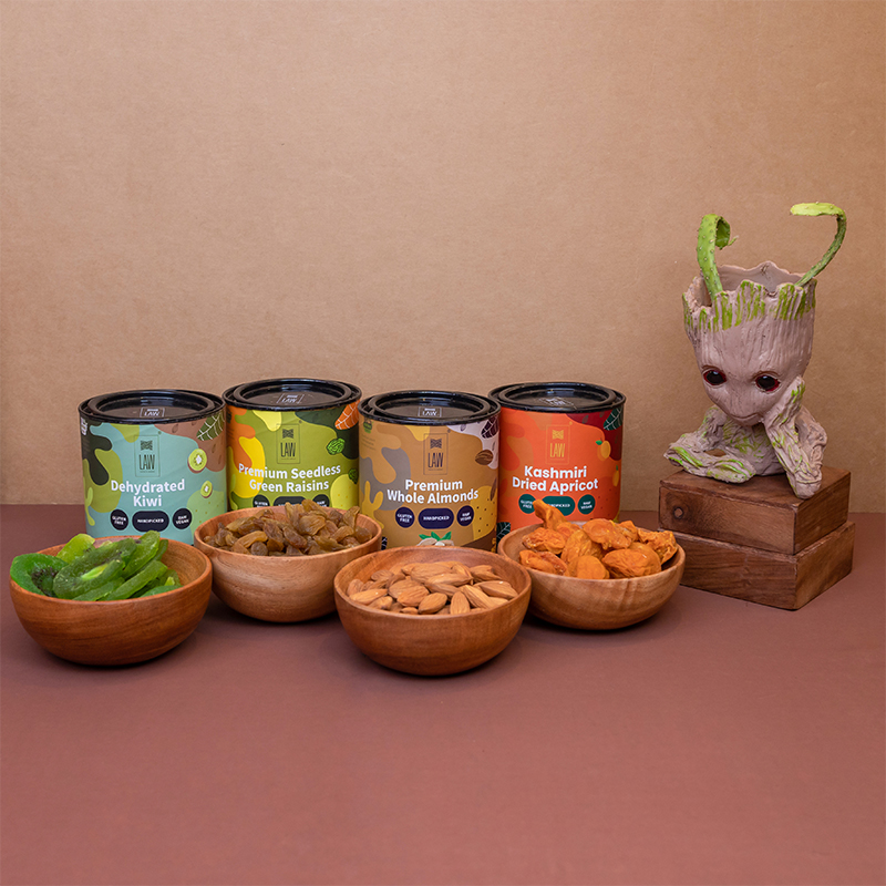 Since ancient days, raw nuts and dried fruits have been known for their many health benefits and are a great energy source for everyday snacking. Here is a healthy stash to gift yourself or others fresh and organic dried fruits and nuts. Grab these munchies and snack on them anytime, anywhere. These come in eco-friendly tin packaging to ensure the product is protected and freshly delivered to your doorstep. Here's the premium stash to gift yourself or others with fresh, organic, and nourishing dried fruits for the soul. Nuts for a Greener Diwali" is a thoughtfully curated dry fruit box designed to infuse your Diwali celebrations with the spirit of sustainability. This eco-conscious gift is a perfect choice for individuals who want to enjoy the festival while making a positive impact on the environment.