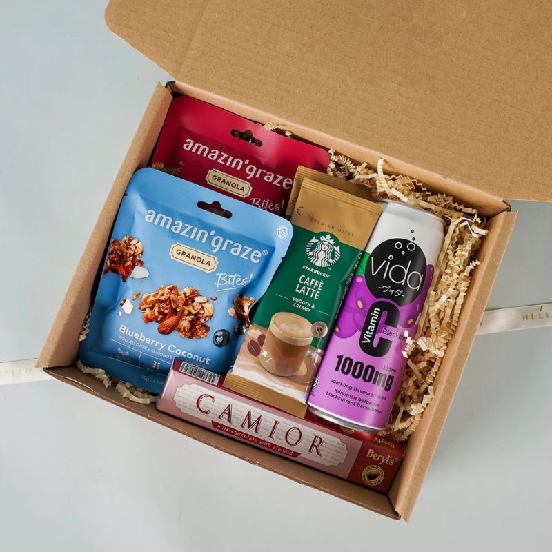 Indulge in a curated selection of premium treats with the Delight Moments gift set, perfect for those who appreciate the finer things in life. This thoughtfully crafted collection includes Starbucks® Premium Instant Coffee Mix or Starbucks Chocolate Sachets, Amazin’ Graze Assorted Nut Mix or Granola, Beryl’s Camior Almond Milk Chocolate, and a VIDA Sparkling Flavored Drink. Whether you're treating yourself or gifting a loved one, this set promises a luxurious experience, combining quality and delightful flavors. Get yours today and elevate your snacking moments.