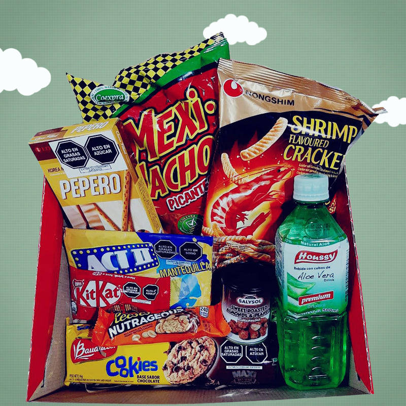 Have you got something to celebrate? Don't keep it to yourself - share it! And while you're spreading the good news, why not spread some snacks around, too. In this box you'll find a range of flavours, from spicy nachos to sweet chocolate and savoury shrimp crackers. Everyone will have something to celebrate once they open this box!