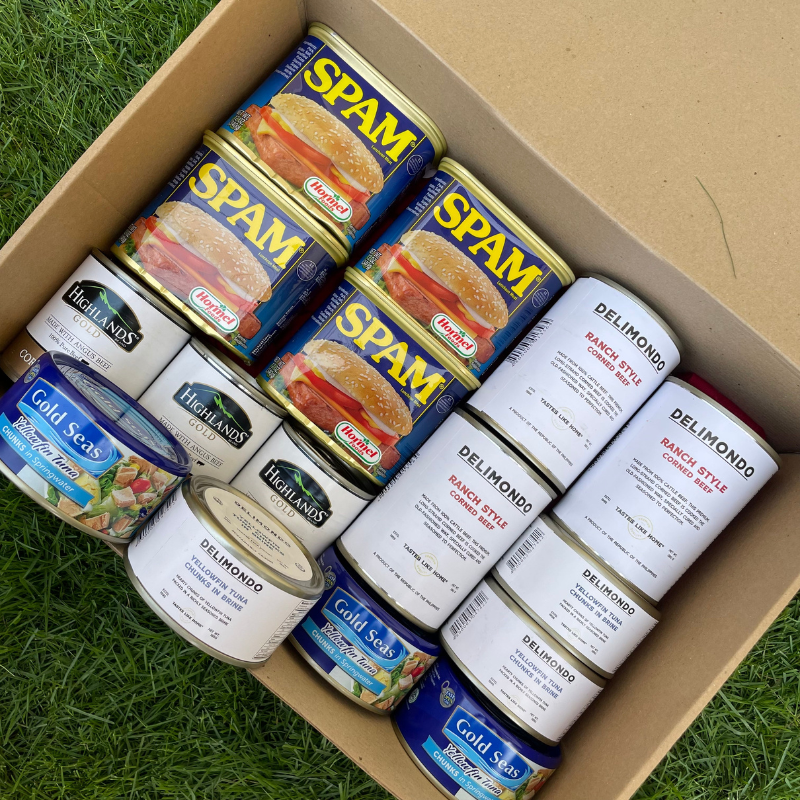 Get hyped with this canned food game with the Luxury in Cans Box. Now, there is no need to choose which canned goods to open next, as every choice on this box is a certified yummier! Whether it's pork, beef, or tuna, you'll surely want more after the first bite. You'll find SPAM, Delimondo, Goldseas, and Highlands. Flavors may vary, but the choice is yours in what to enjoy first!