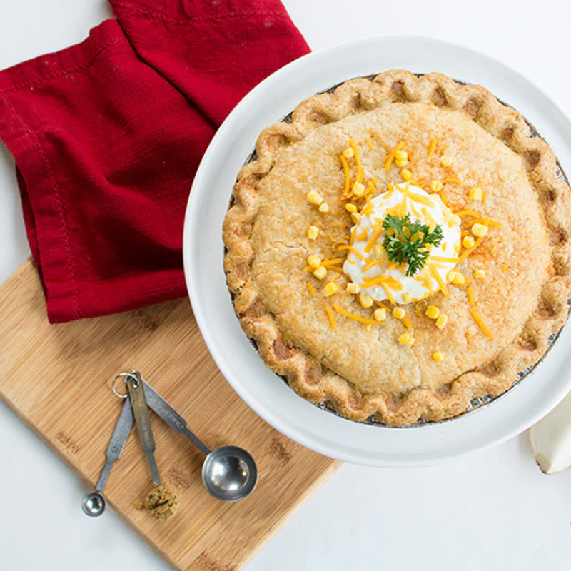A tasty southwestern take on their bestselling Chicken Pot Pie. The freshest Springer Mountain Farms® white meat chicken (no antibiotics, hormones, or steroids) combined with their house made Mexican seasoning, corn, mild green chilies, sour cream, cheddar cheese and baked to perfection in our signature handmade all-butter crust. For busy weeknights, everyday entertaining, or a thoughtful gift, all of our pies are handcrafted and beautifully packaged to make every occasion an effortless celebration. Pies are 10 inches in diameter and serve 8 - 10 slices.