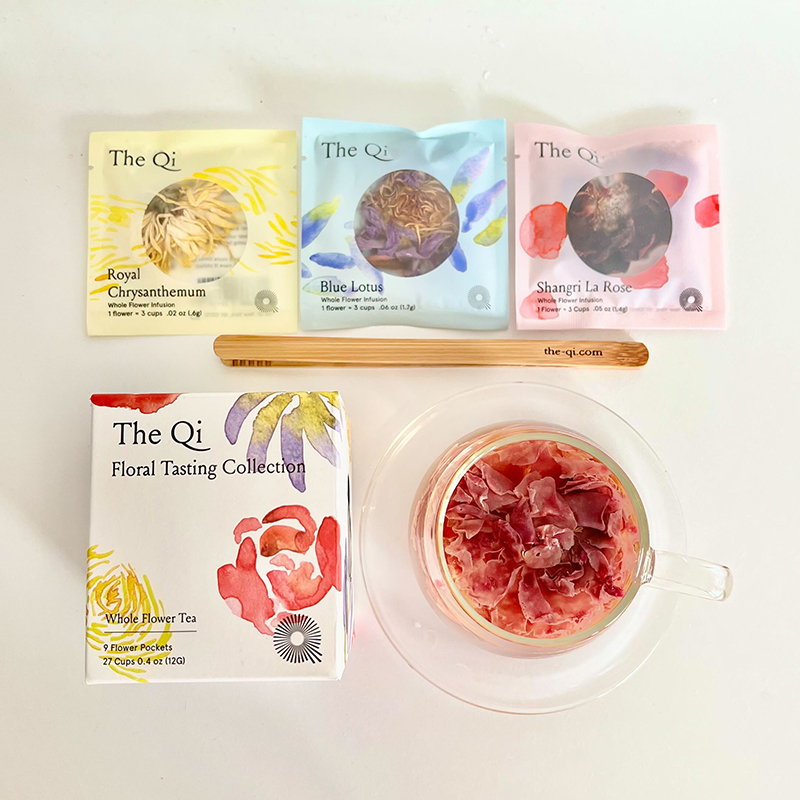 Feel an overall sense of inner Zen. Experience all three varieties of flower tea in this Floral Tasting Collection for a magical flower garden to cup ritual. Set your intentions, watch the flower bloom back to life, and feel its beauty and Qi.