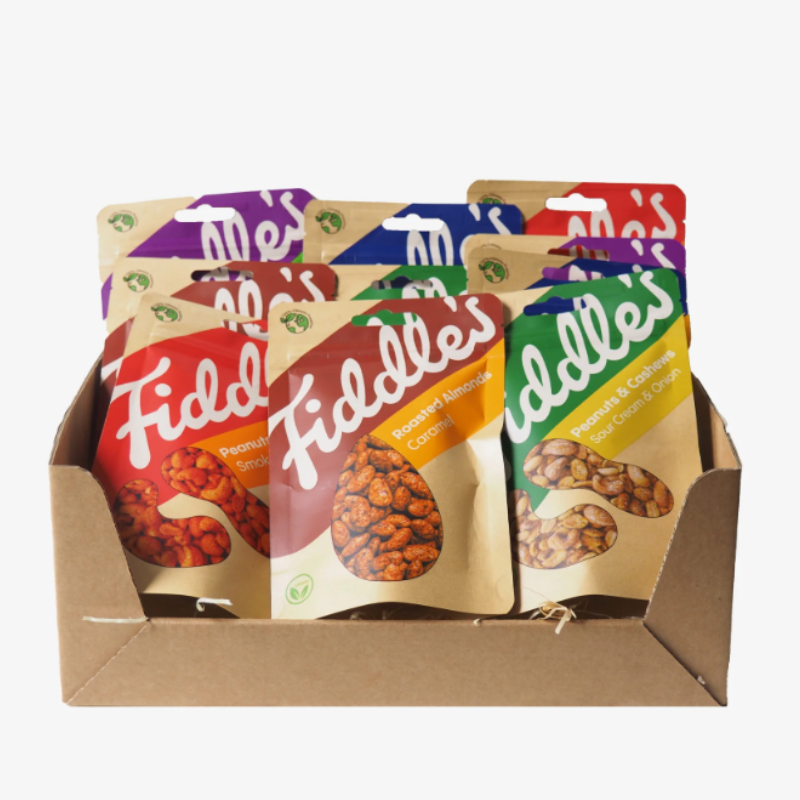 A tasty selection box of delicious nuts flavors, roasted to perfection! Bold and zesty peanuts and cashews coated in tangy sour cream and onion. Let the irresistible sweetness of creamy caramel almonds sweep you off your feet. And savor the harmonious symphony of garlic and onion in delectable pistachios. Perfectly compliments fresh drinks and they will keep you needing to come back for more!