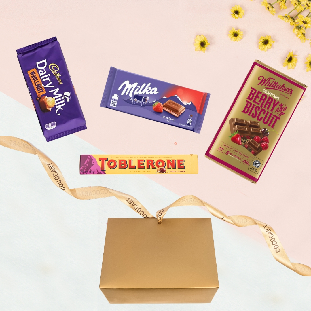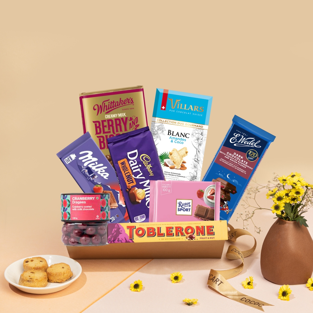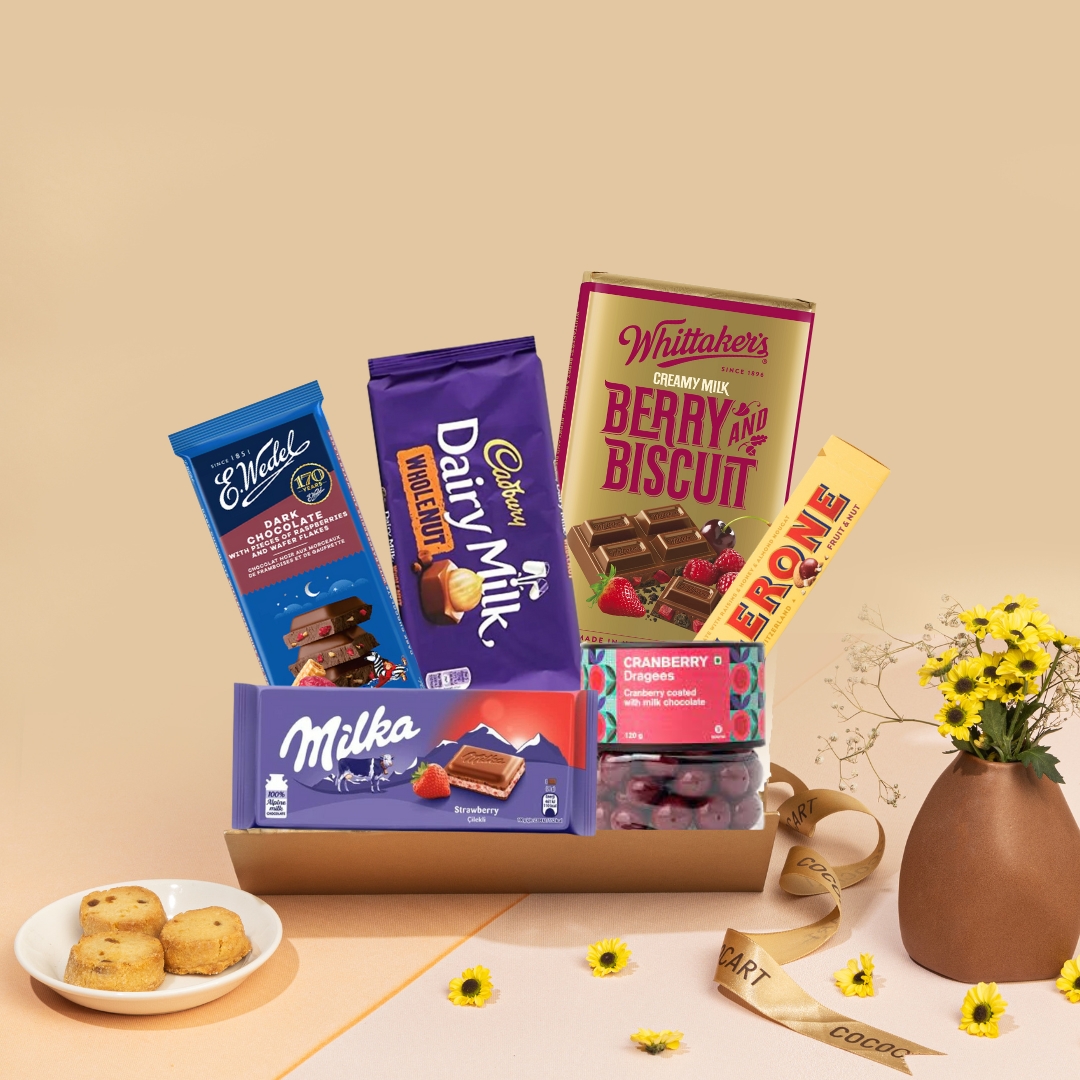 With this special hamper, discover a new twist! Delicious milk and dark chocolates are expertly blended with nuts and fruity flavours. It includes 5 chocolates in this hamper. This is a perfect gift either for yourself or your loved ones.