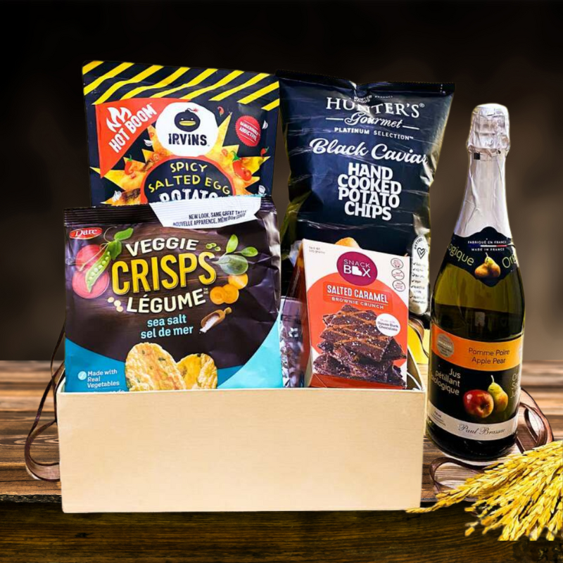 If you are looking for an affordable gift basket with delicious bubbly and gourmet snacks, you will love unboxing these goodies and treating yourself to an instant good time. This box includes a Deka wafer roll, salted caramel brownie crunch, Mega chips in sour cream & cheese, ChaCha spiced roasted sunflower seeds, Meba dark chocolate hazelnut cookies, and Primo non-alcoholic sparkling juice paired perfectly. Healthy while packing a serious punch with flavors and ingredients - this is something you won’t want to skip out on.