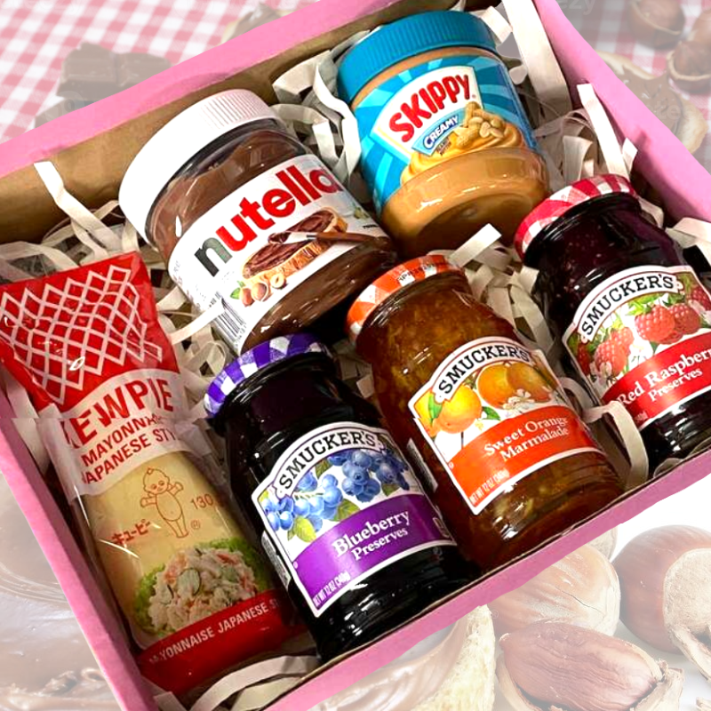 Happiness is like jam; you can't spread it without getting some on yourself. Select this stash and spread happiness with yourself or everyone around you. Inside, your gift is packed with scrumptious jams and jellies such as Nutella chocolate, Skippy peanut butter, and a selection of fruity jams from Smuckers. Add it to toast or a sandwich, or use it as a glaze for enhanced flavor.