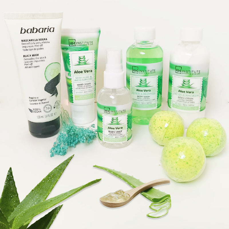 With this kit, you'll feel completely relaxed and filled with aromas. It's an ideal and appreciated gift for anyone who loves to pamper themselves and enjoy the benefits of Aloe Vera extract. Includes: 3 bath bombs, 60ml hand cream, 150ml shower gel, 150ml body lotion, 60ml body spray, Also included is a 100ml black cucumber and charcoal mask for all skin types to detoxify and eliminate impurities. Enjoy a moment of relaxation!