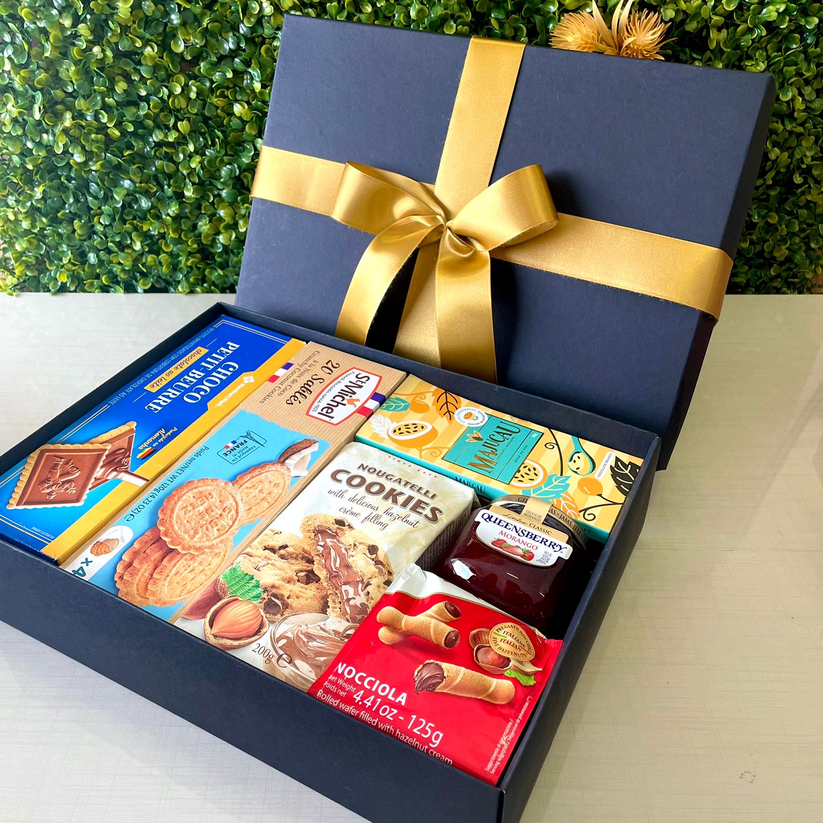 This is the perfect gift for whenever your sweet tooth is biting hard. Who can resist a gourmet box of cookies filled with hazelnut cream, Queensberry strawberry jam, passion fruit chocolate bar, coconut cookies and much more? Share with friends over a drink or indulge yourself. We won't tell!