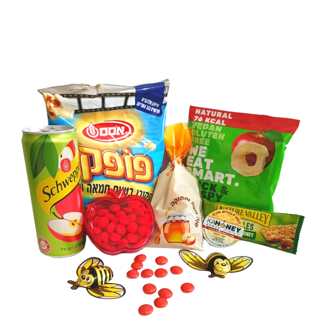 Let's celebrate the Jewish New Year with this fantastic apple and honey gift box! On this special occasion called Rosh Hashana, apples and honey are eaten to represent reflecting on the past and looking forward to a completely sweet year ahead. Bringing you a themed box filled with apple chips, soda, honey popcorn, granola bar, and more. The chocolate bees will surely give your recipient a sweet start to the year!
