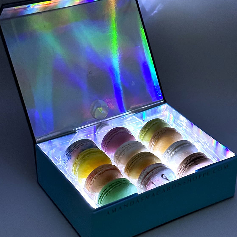 Light-up Gift Box of 12 French Macarons - White Glow Box™
