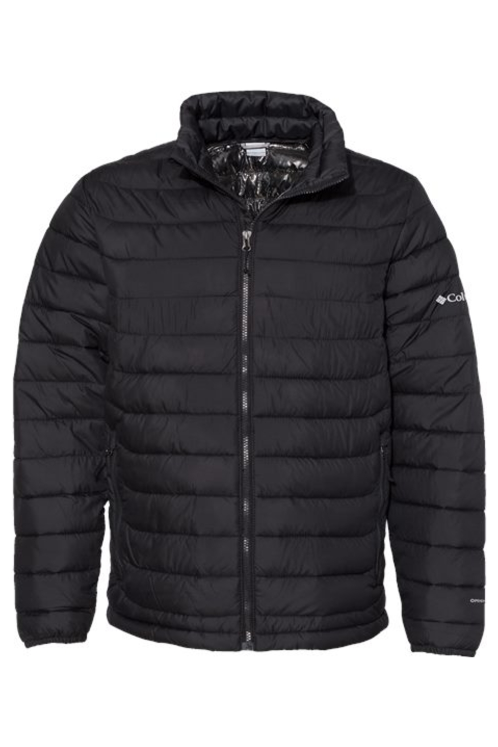 - Branded Style: Columbia logo screen-printed on left sleeve with chin guard for additional comfort
