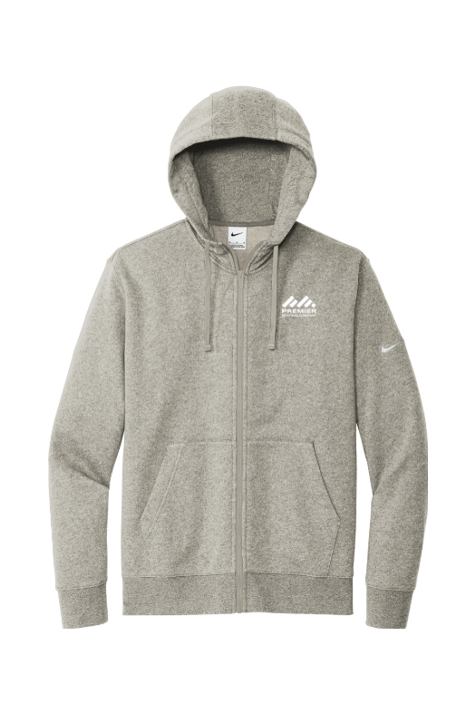 The Nike Club Men's Fleece Sleeve Swoosh Full-Zip Hoodie brings together athletic performance and street style in one essential wardrobe piece. Made with 72% cotton, 20% polyester, and 8% organic cotton at 8.2 oz. weight, this hoodie delivers premium comfort with its brushed-back fleece construction.