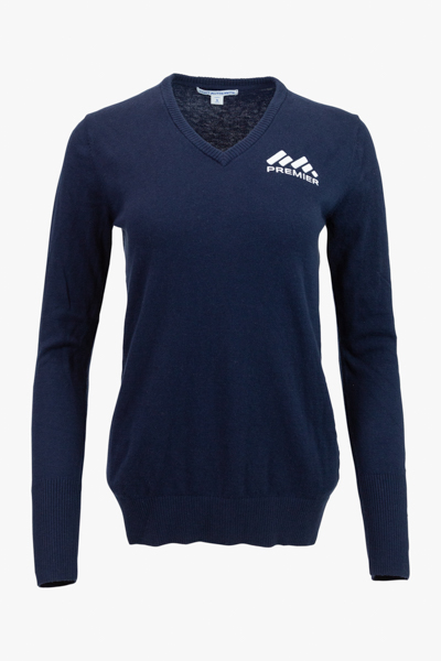 Elevate your work wardrobe with this timeless v-neck sweater, perfect for layering or on it's own. Crafted from a blend of 60% cotton and 40% nylon, this sweater offers a perfect combination of softness and resilience. The fine-gauge knit and fully-fashioned sleeves ensure strength, comfort, and long-lasting wear, making it a reliable choice for any occasion.