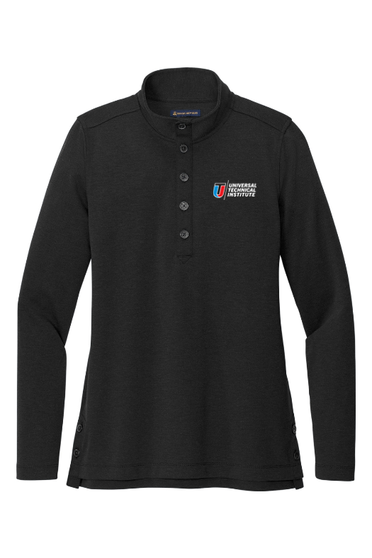 Elevate your layering game with the Brooks Brothers Women's Mid-Layer Stretch 1/2-Button. This sleek, tailored piece bridges the gap between professional and casual wear, making it perfect for both office settings and after-hours relaxation.