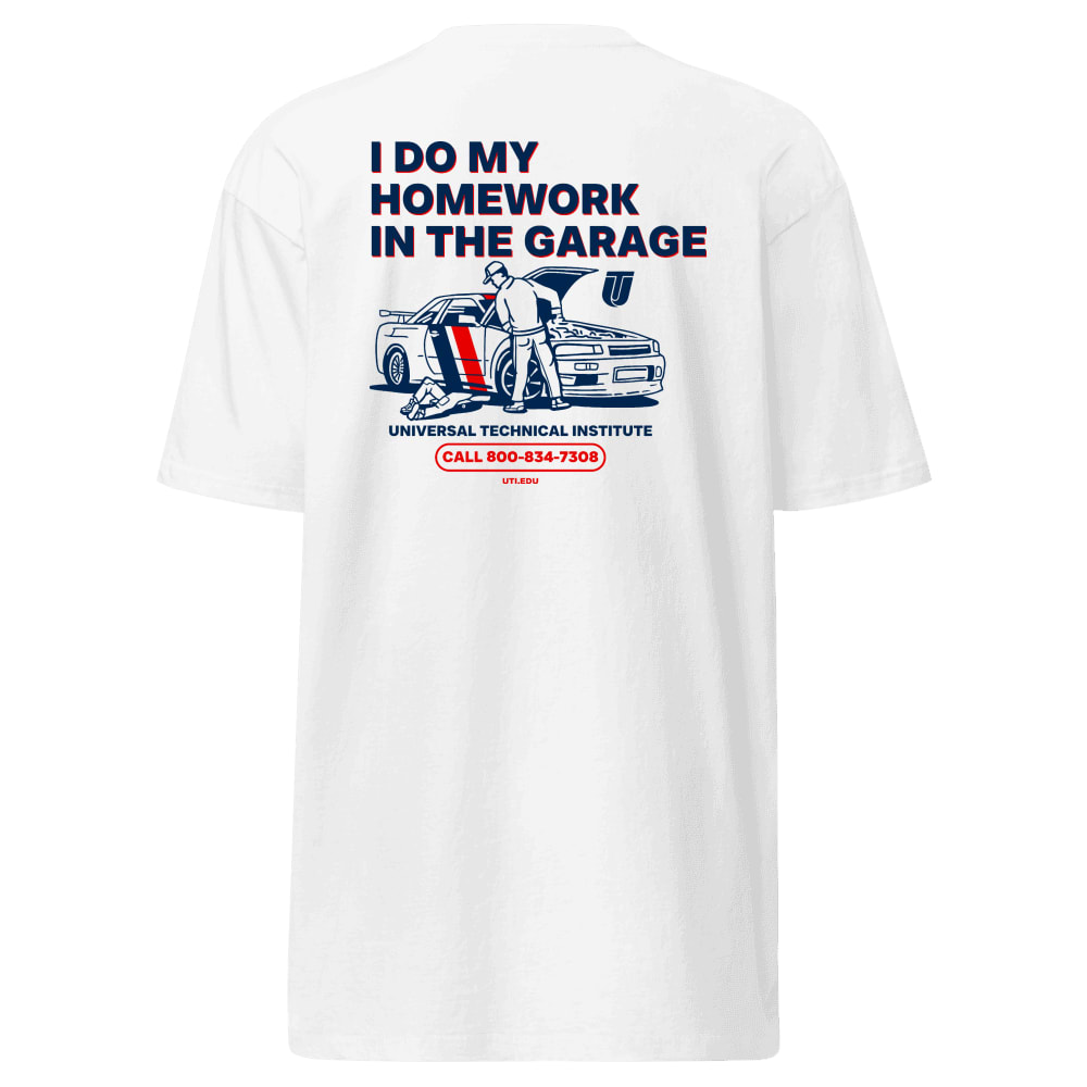I Do My Homework in the Garage – Automotive Student T-Shirt